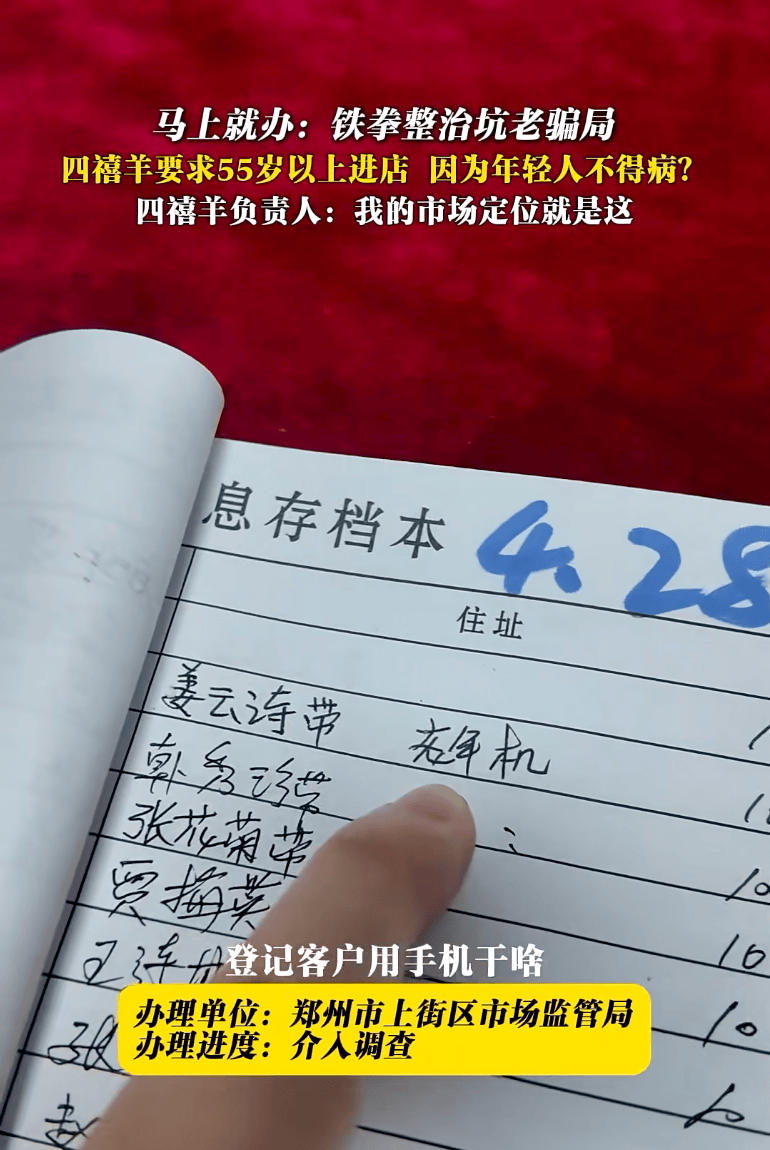 “这是我的市场定位,年轻人基本上身体没有什么太多的疾病。”面对当地市场监管局工作人员的检查和询问,四禧羊生活馆的负责人如此解释为什么店铺规定只有55岁以上的人才能进店。